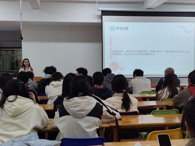 王毅峰围绕考研、考公、考编、就业及赴美实习等发展路径,分析当前形势与机遇,勉励同学们珍惜时光、把握当下,主动向优秀学长看齐,汲取奋进力量。吴迪结合专业教学与人才培养实际,为同学们升学备考、职业选择提供细致指导,表示学院与全体教师将持续做好支持保障,助力学生成长成才。