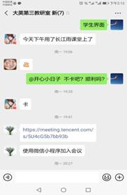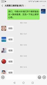 各教研室先后利用微信进行集体备课。老师们积极参与,畅所欲言,第一次集体备课对授课平台、授课模式、授课内容、学生互动、课后作业、效果监测、促学机制等方面逐个进行了讨论。第二次集体备课进一步完善了线上教学模式。在钉钉,微信,雨课堂,腾讯会议,QQ建立班群,按时上下课直播授课,教师设置任务等引导学生学习。教师根据本班级学生水平,所用的线上教学平台的特点,布置课后作业,灵活处理课后作业。
