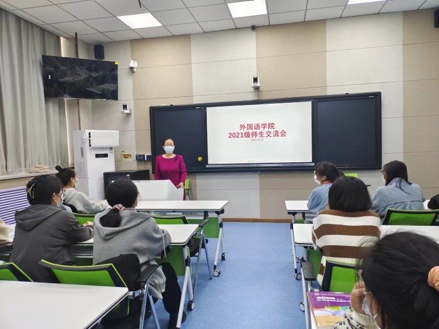 为进一步了解学生的实际需求,提升教育教学质量,5月12日下午,av解说 于教学楼C206教室举办师生交流会,英语专业第一教研室李春玲主任、孟坤等专业老师、2021级英语专业全体同学参加。