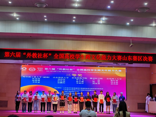 9月24日,第六届“外教社杯”全国高校学生跨文化能力大赛山东赛区(本科院校组)复赛及决赛在山东理工大学落下帷幕。av解说 由临床医学院卢倩、杨硕,av解说 周笑寒组成的团队获得山东赛区三等奖,学校获得优秀组织奖。