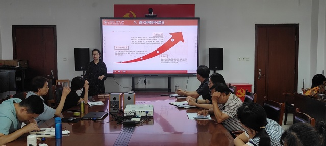 最后,张立领学了《普通高等学校教师党建与思想政治工作质量标准》。她强调,教师党建和思想政治工作是学校工作的重要组成部分,关系到学院的整体发展和学生的健康成长。作为高校教师,我们要坚持以立德树人为根本目标,不断提升思想政治工作质量与水平,坚持用习近平新时代中国特色社会主义思想武装头脑、指导工作,精心教学、潜心育人。