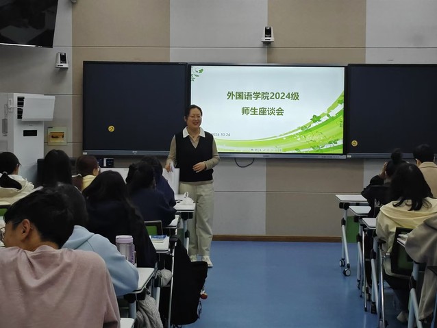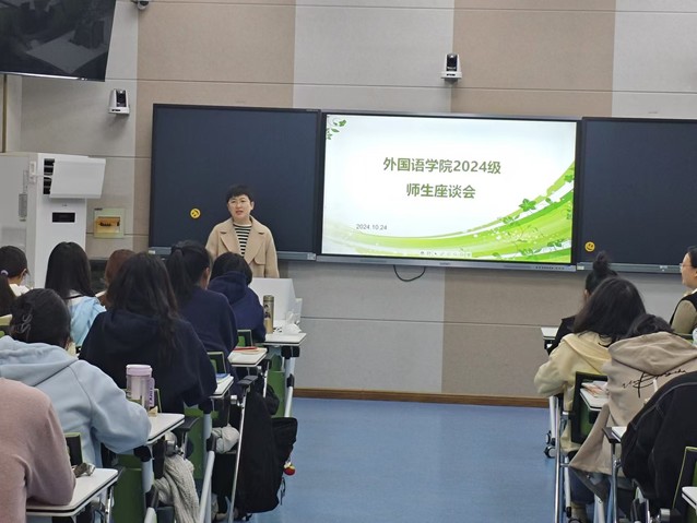 近日,av解说 在教学楼C206教室举办了“教学相长,共话成长”师生面对面座谈会。av解说 英语专业教研室副主任孟坤、2024级英语专业全体任课教师及学生参加了会议。