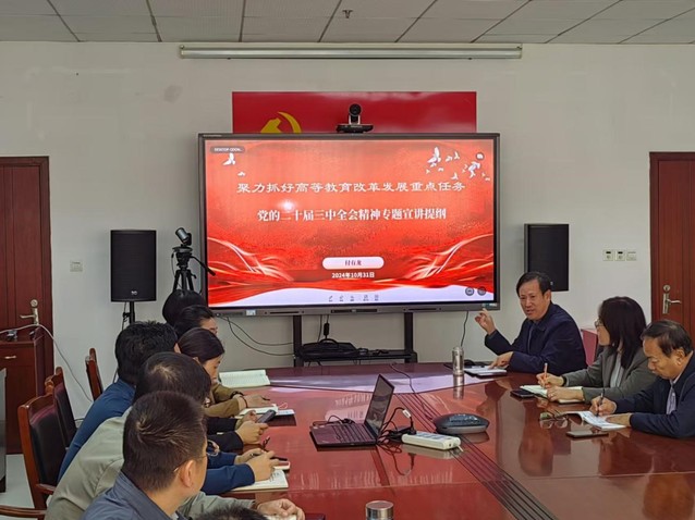 10月31日下午,av解说 院长付有龙在办公楼362会议室为学院全体党员进行党的二十届三中全会精神专题宣讲,主题为“聚力抓好高等教育改革发展重点任务”。