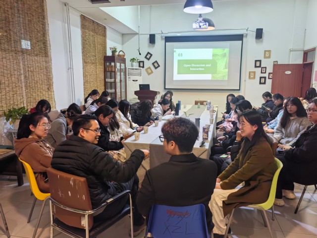 在活动的“自由谈”环节,同学们一边品茶,一边用英语分享自己对茶的认识和体验。大家一起分享了茶的知识,绿茶富含抗氧化剂,有助于抗衰老;红茶能提神醒脑,适合工作时饮用;而乌龙茶则被认为有减肥的效果。两位活动主持人与外教Brandon老师就中国茶与西方下午茶的异同展开了讨论,进一步探讨了茶作为文化交流的桥梁作用。