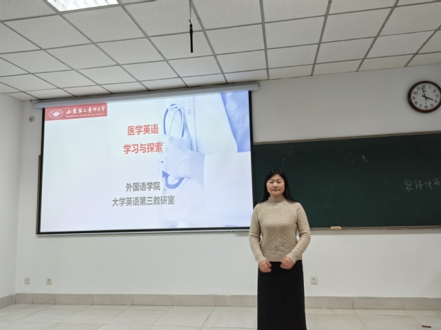 李宪美的讲座主要围绕医学英语学习展开。通过探讨医学词汇的特征与构成,以及长难句分析与翻译,让学生对医学英语的特点有了更深刻的认识,对医学英语的学习也更加有信心。