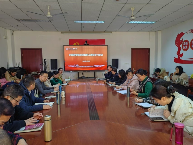 副书记朱宏带领大家学习了国家主席习近平发表的二〇二五年新年贺词以及习近平总书记关于扎实推动教育强国建设的重要讲话精神。结合“教育强国,外语何为” 的命题,强调全体教师要深刻领会讲话精神,在教育强国建设中找准外语教育的定位与方向,为培养具有国际视野和跨文化交流能力的专业人才贡献力量。