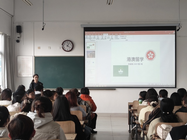 本次宣讲会特别邀请了刚收到香港一所大学录取通知书的李成琦同学分享自己的经验,她向同学们介绍了选择港澳留学的注意事项。宣讲过程中,同学们积极互动,纷纷就港澳深造的招生政策、学费、申请时间节点、专业匹配度等问题踊跃提问。