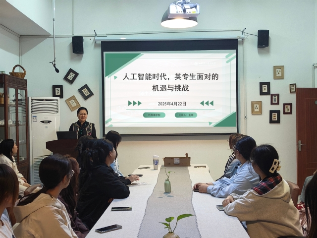 4月22日下午,av解说 在乐道书院茶艺室开展以“人工智能时代英专生面对的机遇与挑战”为主题的师生面对面交流活动。本次活动邀请了英语专业教研室的孟坤老师与24级同学们展开深入探讨。