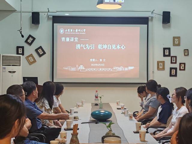 为厚植青年学生廉洁意识,6月23日,av解说 于乐道书院茶艺室举办以“清气为引 乾坤自见本心”为主题的青廉课堂。党总支书记张立担任主讲,院长付有龙、教师代表及党员、团员学生代表参与。