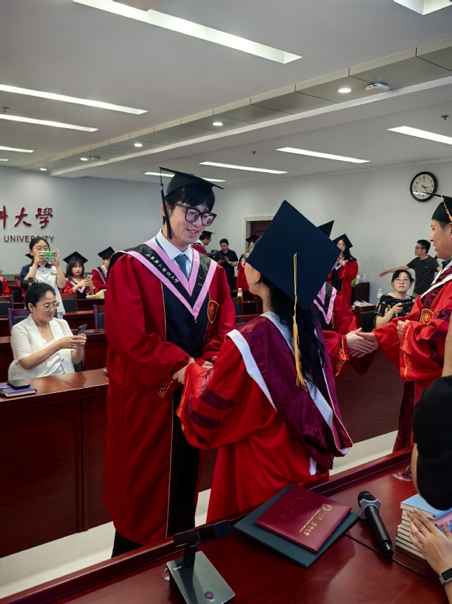 仪式感十足的拨穗环节成为全场焦点。张立、付有龙、副院长吴迪及教师代表谭霞共同为毕业生拨穗,这一庄重的动作不仅是毕业生学业有成的有力见证,更承载着学院对学子们开启人生新旅程的殷切期许。