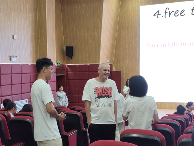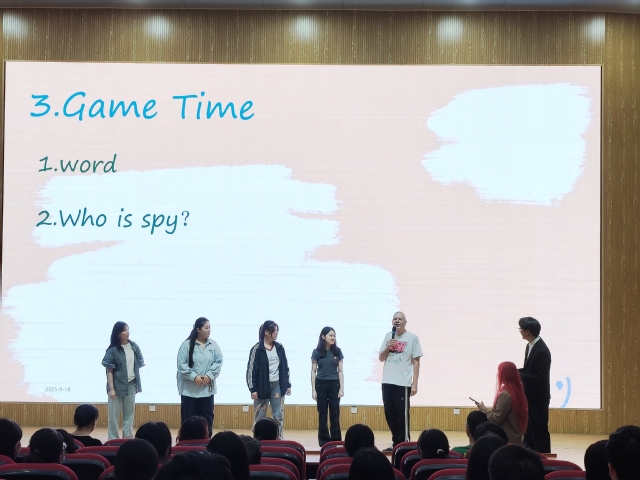 英语角活动现场互动氛围热烈。开场以Confidence unlocks the limitless potential within me”为主题展开讨论,同学们结合自信对个人成长的推动力用英语发言,并与老师深入探讨;随后的热场自我介绍环节,大家用英语展示个人特点,快速拉近彼此距离。趣味游戏互动环节,“飞花令”“谁是卧底”等英语游戏让同学们在欢乐竞技中提升英语应用能力;自由分享环节,大家围绕兴趣爱好、文化差异等话题交流,在与老师的互动中进一步锻炼英语表达。