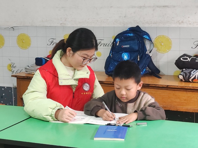 活动现场,学院党员志愿者团队结合社区居民实际需求,开展服务活动。在卫生安全宣发专区,志愿者们通过发放图文并茂的宣传手册、现场讲解示范等形式,向居民普及冬季传染病预防、家庭用电用气安全、垃圾分类规范等实用知识,引导居民树立科学健康的生活理念,增强安全防范意识。在社区青少年活动中心,大家化身“爱心辅导老师”,为社区儿童提供一对一学习辅导。志愿者们结合自身专业优势,针对英语单词记忆、课文朗读、作业难点等问题进行细致讲解,帮助他们梳理知识重点、掌握高效学习方法。同时,志愿者们还注重引导孩子们培养良好的学习习惯,鼓励他们树立积极向上的学习态度,现场学习氛围浓厚而温馨,得到了家长们的一致好评。